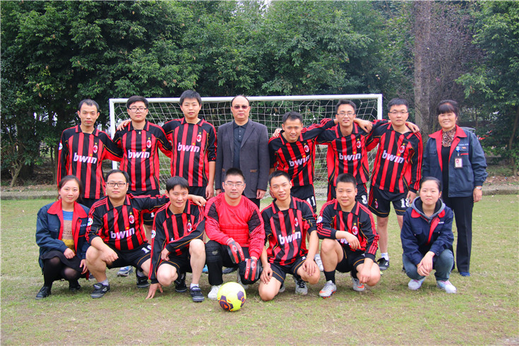 公司足球队获得本次运动会季军,图为领导与公司足球队队员赛前合影